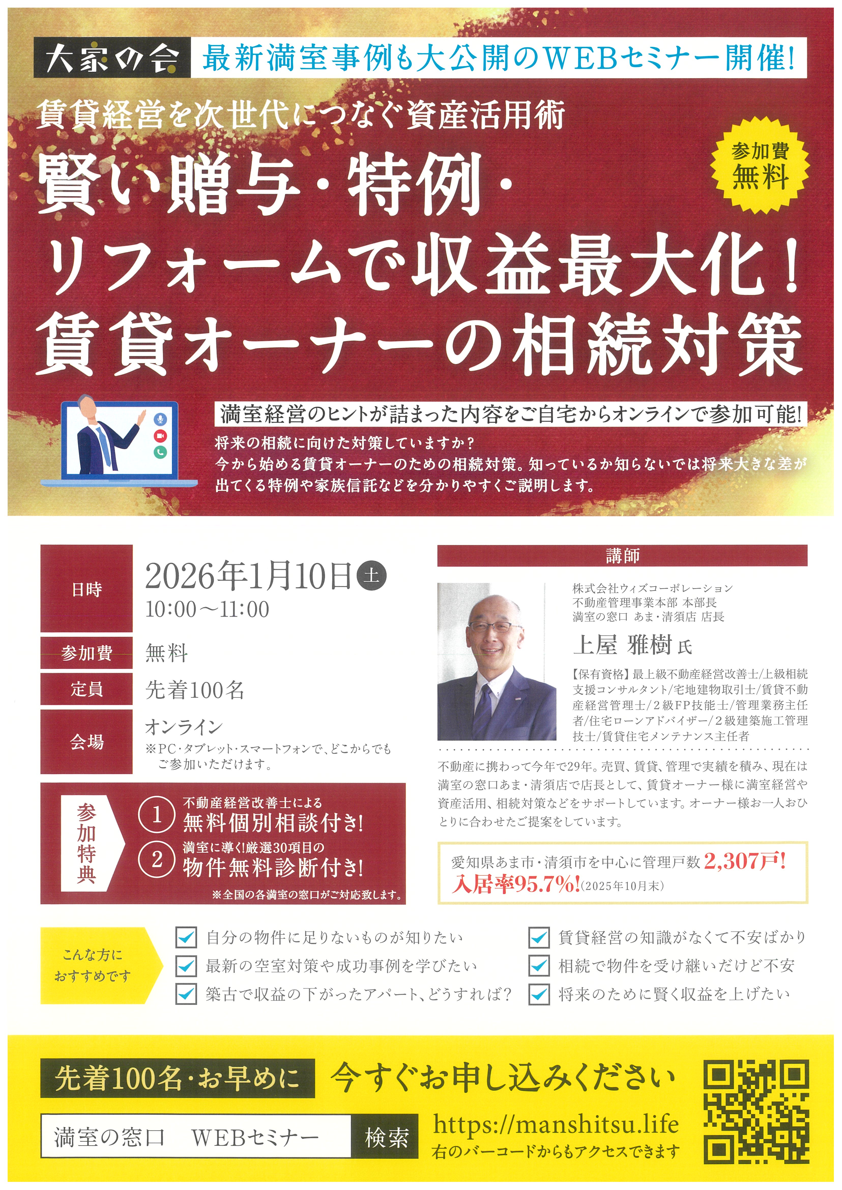 WEB無料セミナー 賢い贈与・特例・リフォームで収益最大化!賃貸オーナーの相続対策
